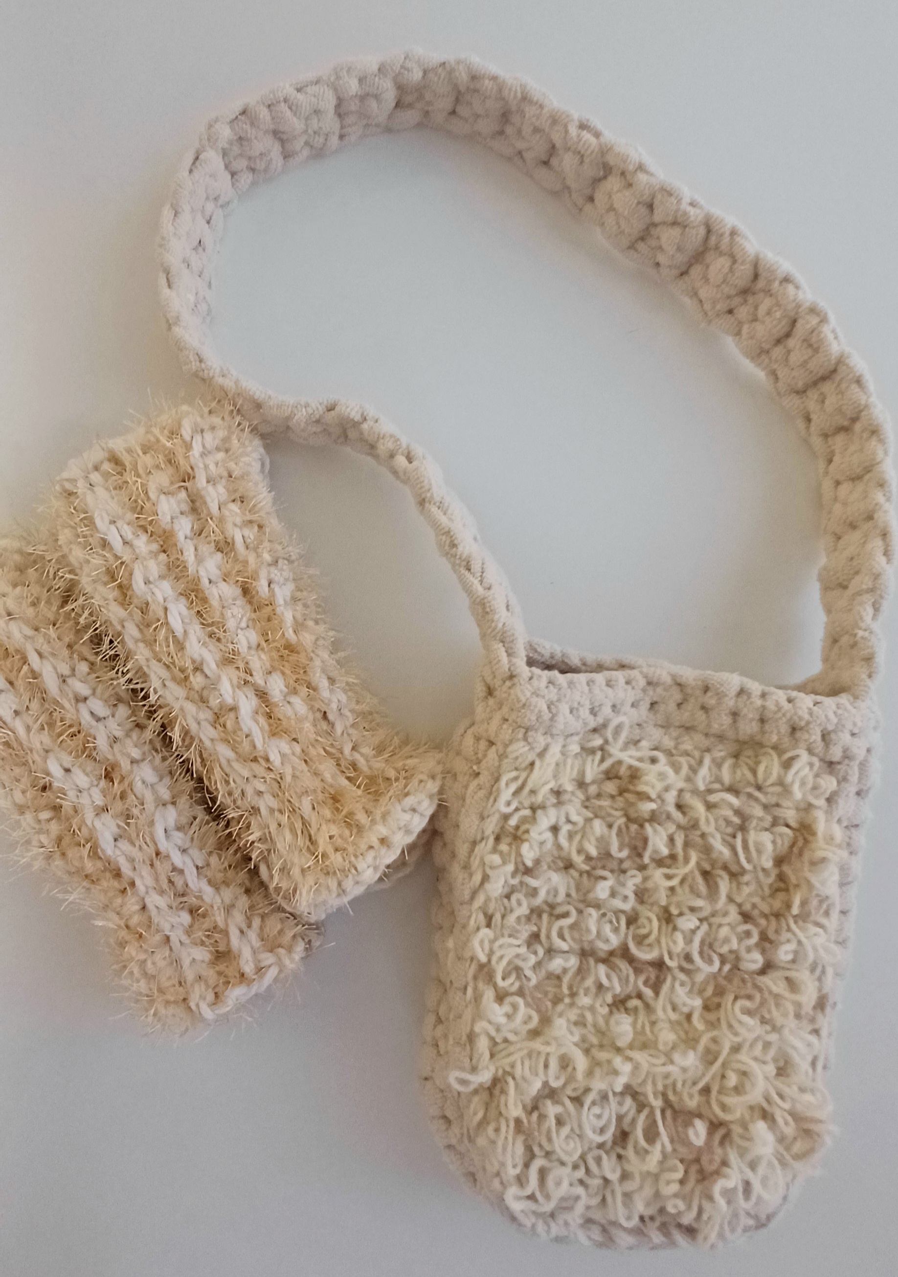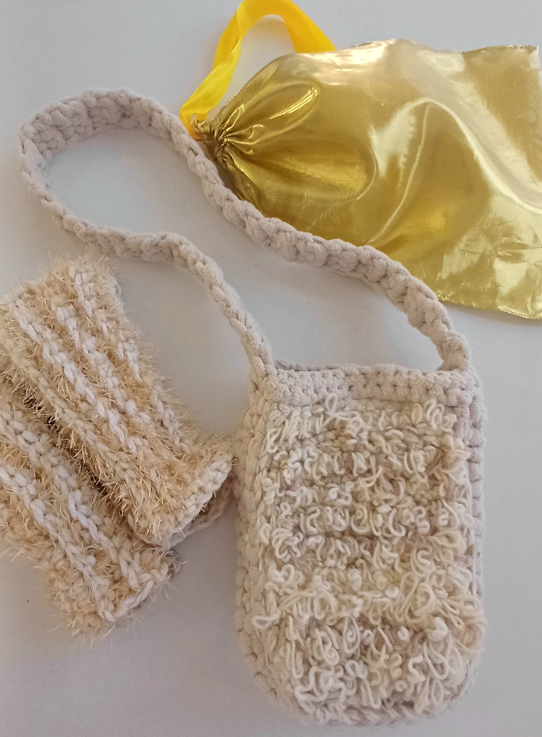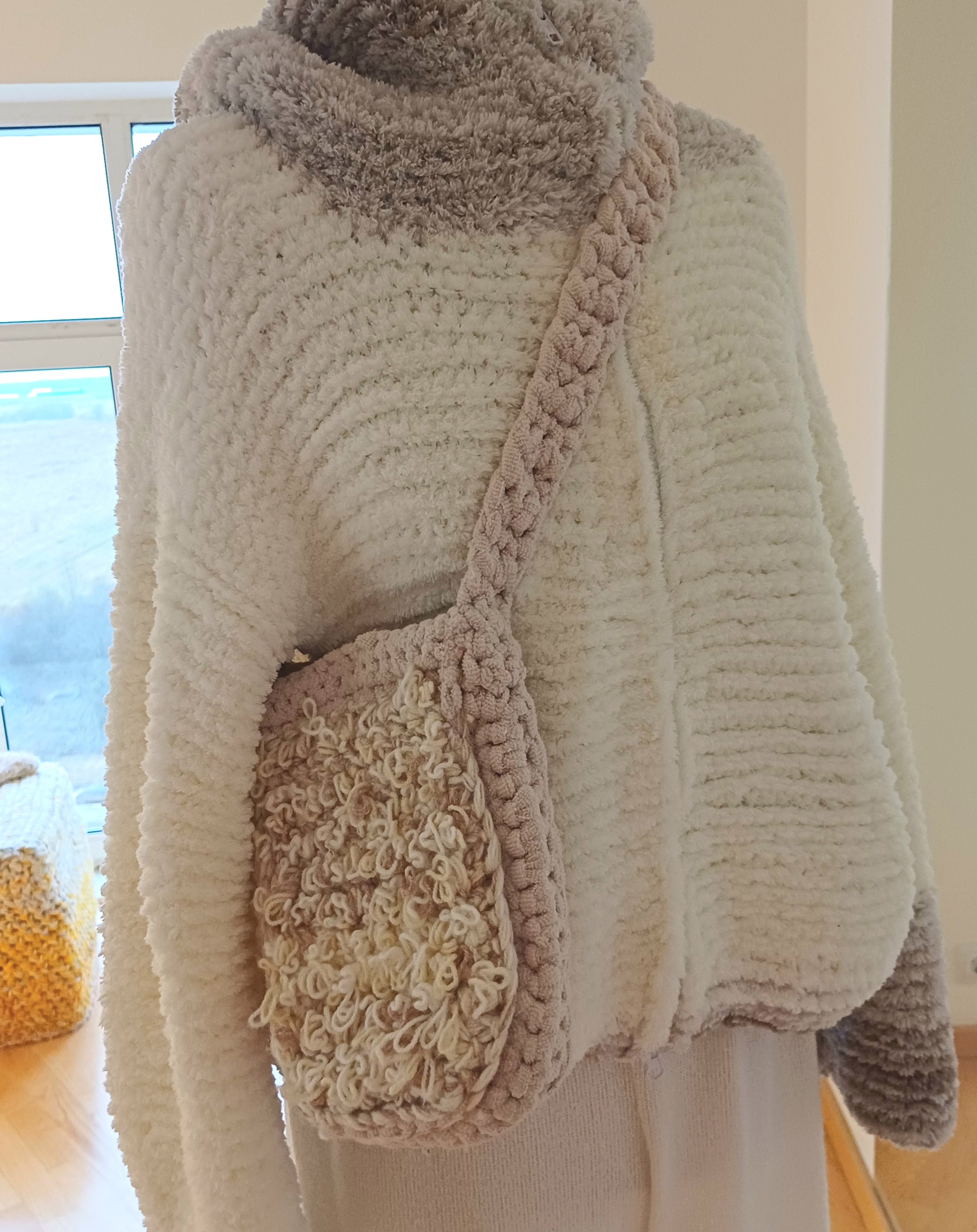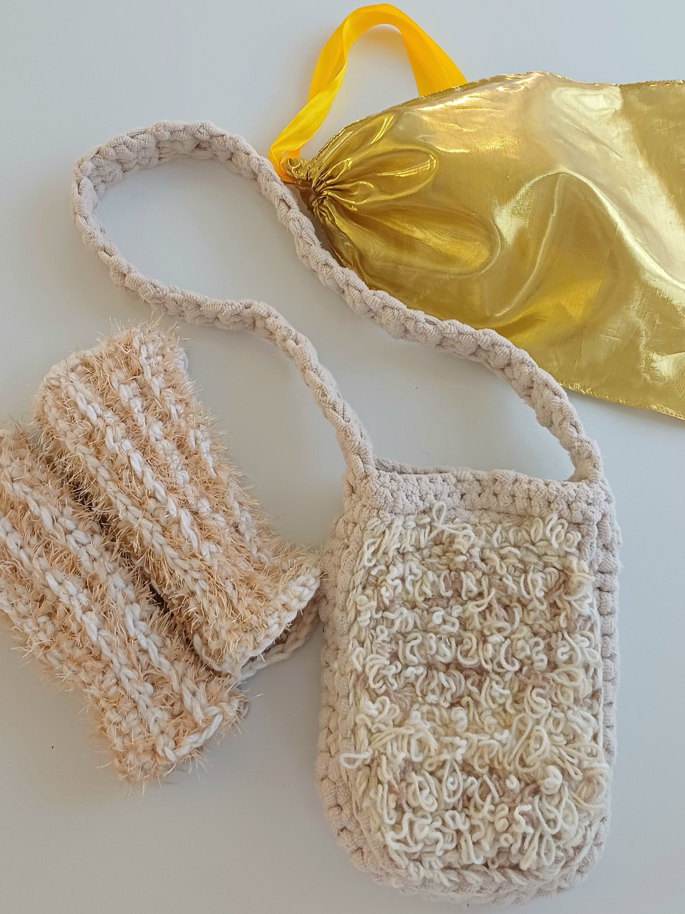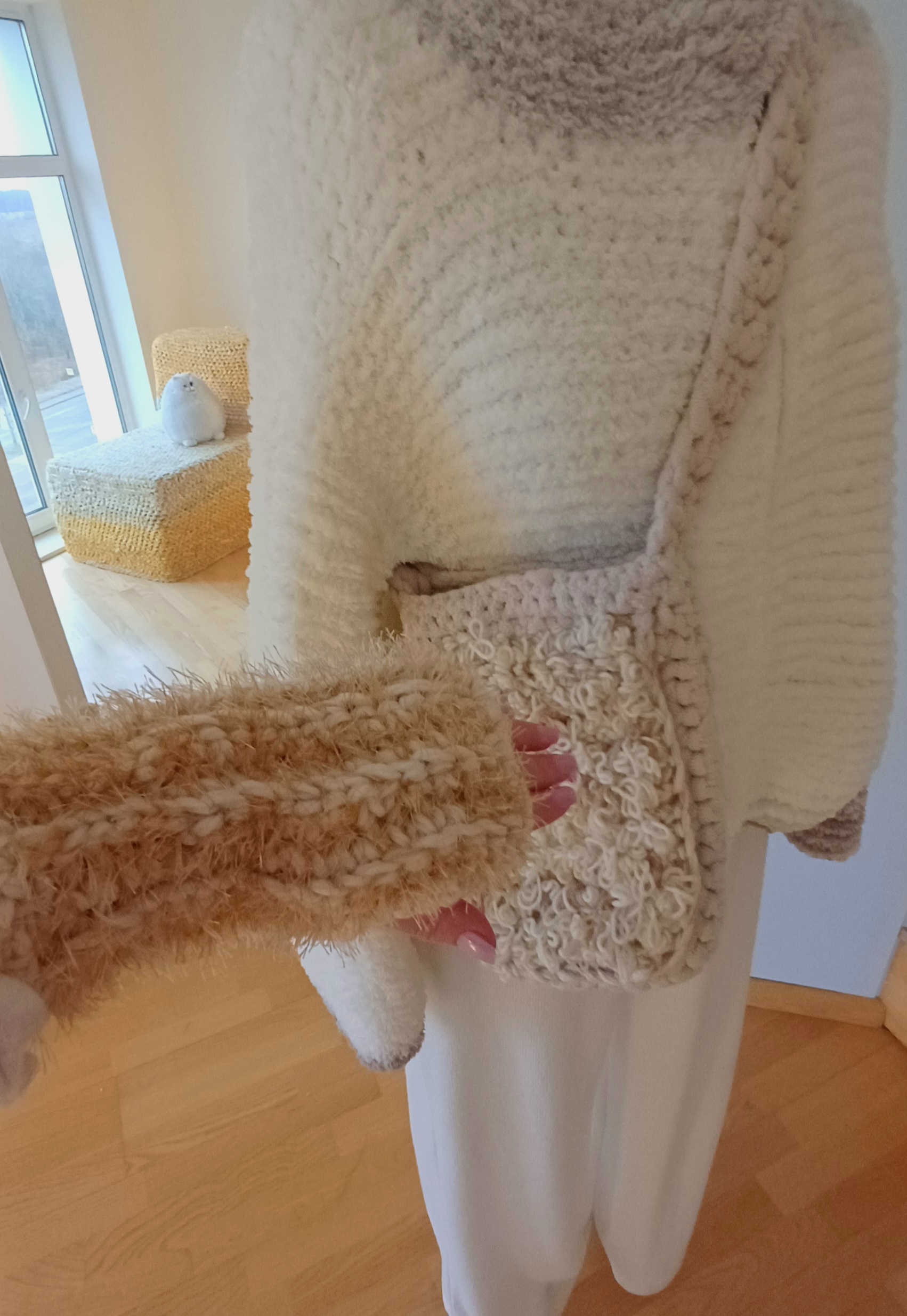 Вязаный комплект:  сумочка через плечо  и митенки - это варежки без  пальцев